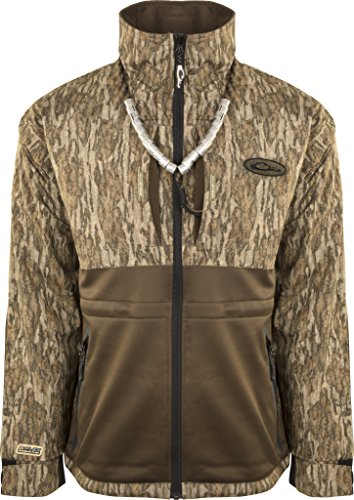 Staying true to our Eqwader™ design (patent #7,318,239), this is the only garment that delivers waterproof protection up top and maximum breathability below, forming the ultimate wader jacket. Engineered with Guardian Flex™ mechanical stretch fabric, this Eqwader™ allows unhindered mobility during critical movements. Lanyard and Bands pictured are not included. Bands only come when you hunt and harvest waterfowl that have been banded. Features: 100% waterproof upper body and arms Breathable lower body 2 Time & Motion™ Magnattach™ call and whistle pockets 2 Time & Motion™ zippered chest pockets Zippered lower pockets Adjustable neoprene cuffs Mid-chest adjustment cinch cord Waist adjustment cinch cord 100% waterproof/windproof/breathable Guardian Flex™ mechanical stretch fabric on upper body and arms 100% polyester breathable fleece on bottom Taped seams