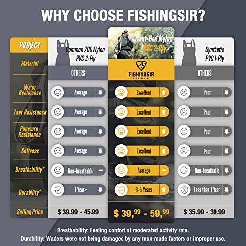 FISHINGSIR KeepDry Chest Waders was designed to keep dry and warm, handle even the toughest work and sport situation. It is best for fishing adventures, hunting, farm working, or any messy situations. We love our buyers; the waders will come with one FREE water-proof phone case and one year quality assurance backed by us.