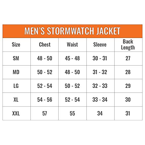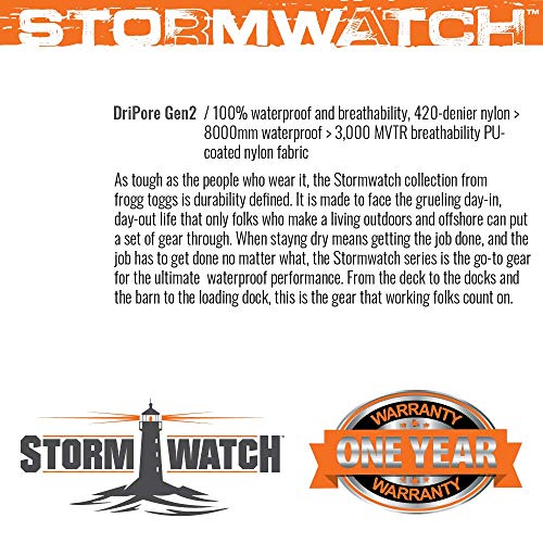 The Frogg Toggs Stormwatch Jacket is a rain jacket with an adjustable, attached hood. Inner and outer storm flap with snap closures help keep moisture out. Zippered external and internal pockets provide ample storage. Hook-and-loop adjustable wrists and the cord-lock adjustable waist allow the wearer to achieve the perfect fit.